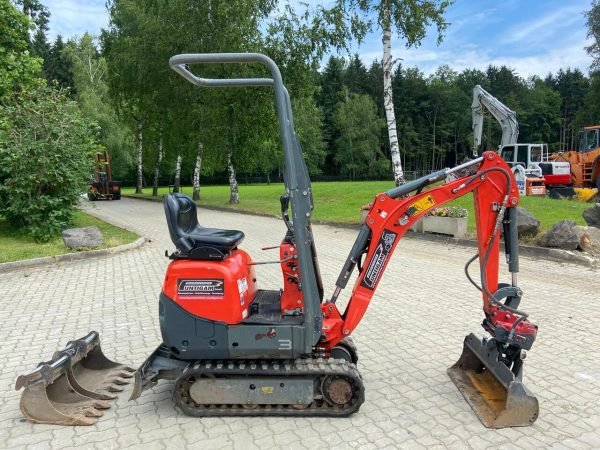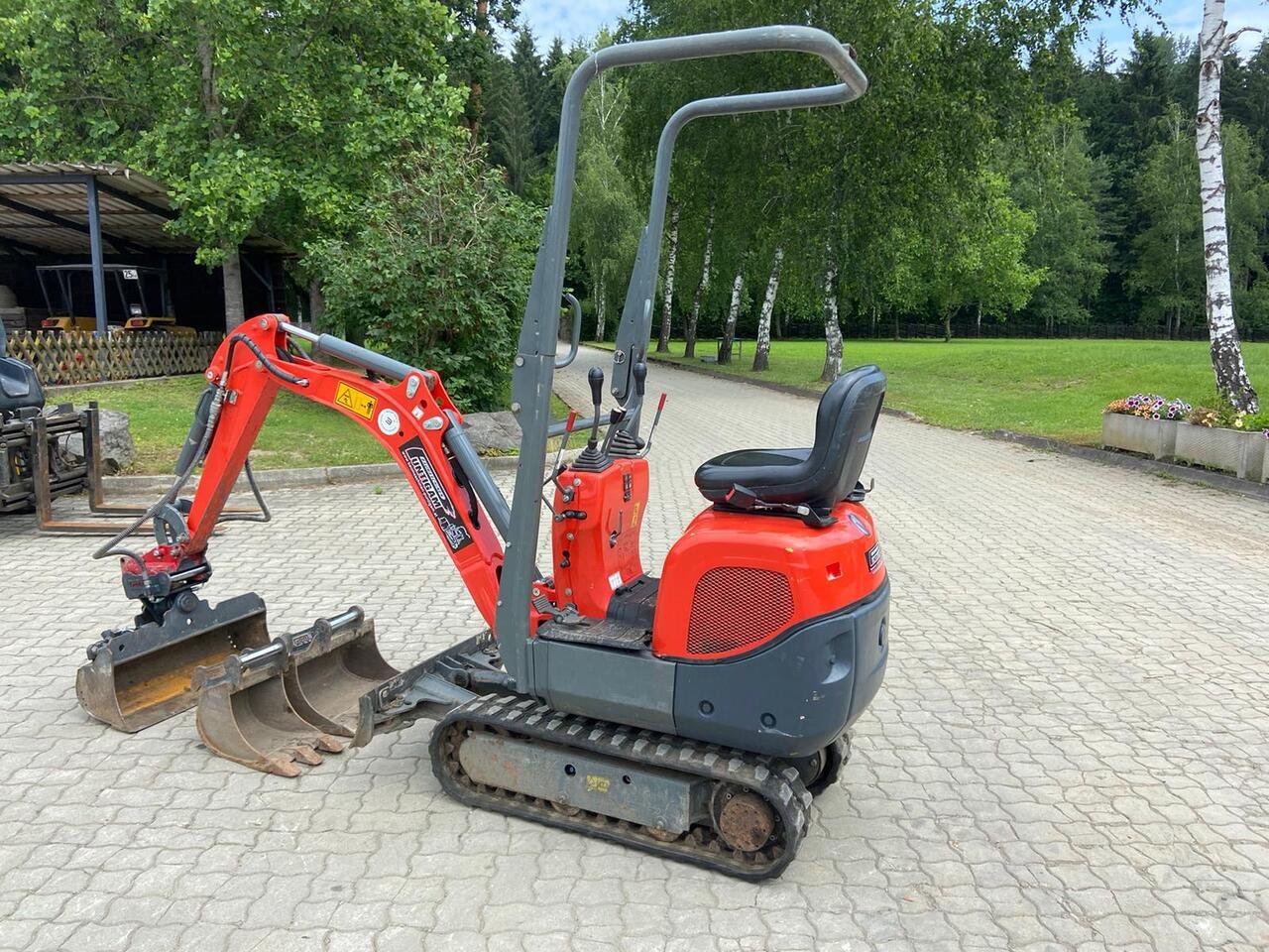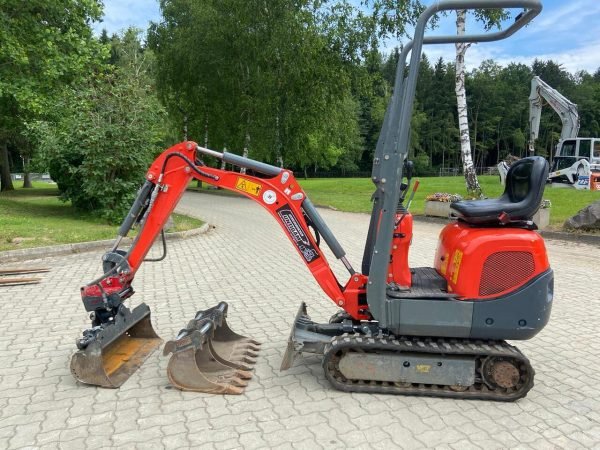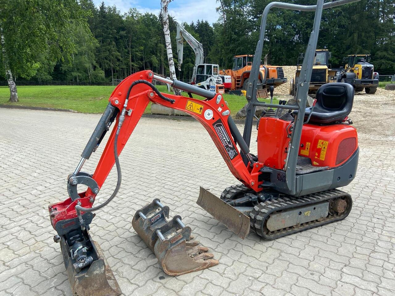 Mini-pelles Wacker Neuson 803 avec attache rapide, 2 godets, 1 godet de curage, entraînement réglable min. 700 mm à max. 860 millimètres.